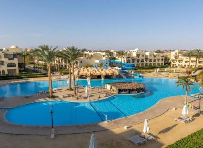 Stella Gardens Resort and Spa се намира в живописния и спокоен район Макади Бей, на около 35 км южно от международното летище в Хургада и на около 40 км от центъра на града. Хотелът е част от големия комплекс Stella Di Mare и предлага достъп до частен плаж чрез вътрешен път или шатъл. Разположението му осигурява тишина, спокойствие и отлична възможност за пълноценна почивка в близост до морето и рифовете на Червено море.