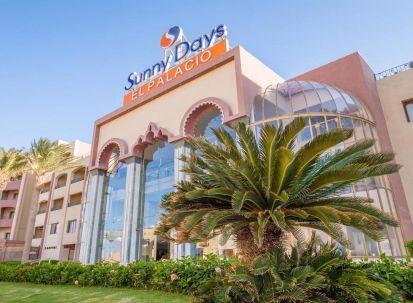 Sunny Days El Palacio предлага автентична ориенталска архитектура, просторна територия, частен плаж, лагуна и мост, водещ към малък остров. Хотелът разполага с открити басейни, аквапарк зона за деца, основен ресторант, тематични ресторанти, барове, амфитеатър, СПА център и търговски обекти.