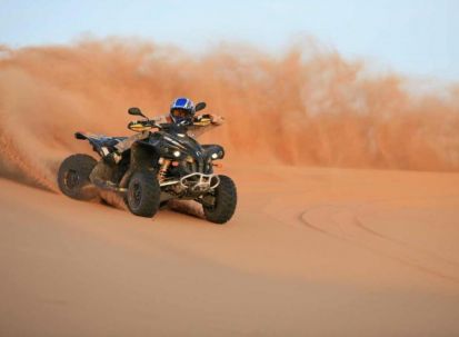 Следобед ще бъдете взети от лобито на хотела и отведени до Quad Bike Center, където ще получите подробен инструктаж за безопасност и кратко обучение. След пробно каране и с поставена защитна каска, е време да започнете своето пустинно приключение с АТВ, което продължава около час и половина.