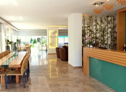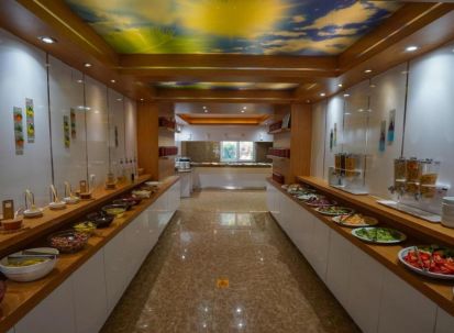 Хотелът има 1 ресторант и 1 бар. Предлага концепция All Inclusive включваща закуска, обяд, вечеря, час за чай и сладкиши, безалкохолни напитки и местни алкохоли. (Барът работи от 10:00 до 23:00 ч.)