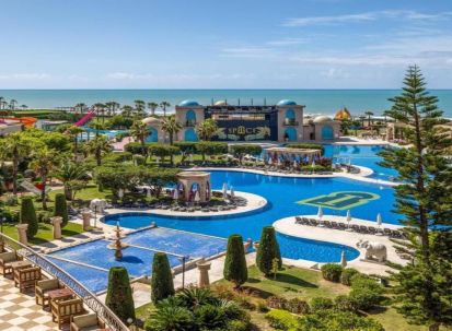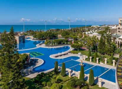 Хотелът разполага с басейни тип аквапарк и осигурява директен достъп до пясъчен плаж на Средиземноморското крайбрежие.