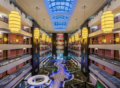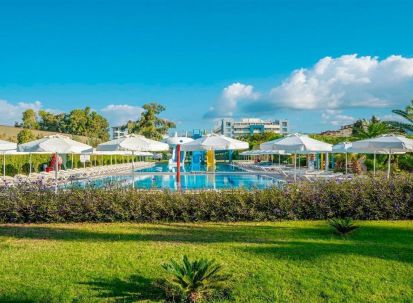 Timo Deluxe Resort 5* е с площ от 13 067 кв.м. Състои се от една 6-етажна сграда. Разполага със собствен пясъчен плаж – на разстояние 75м. от територията на хотела. Предлага 3 басейна, малък аквапарк с 3 пързалки, безплатен паркинг, безплатен wi-fi на територията на хотела, фитнес център и всичко необходимо за една пълноценна ваканция.