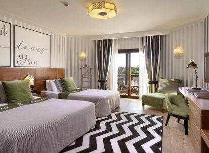 Хотелът разполага с 455 стаи, 278 в основната сграда, с изглед към морето, басейна и градината.