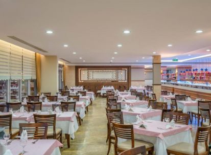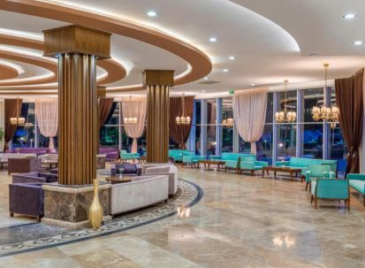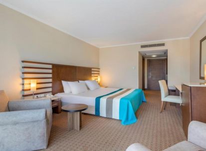 На разположение на гостите на хотела са основен ресторант, 5 бара, два а-ла-карт ресторната, открити и закрити басейни с водни пързалки, сладкарница, СПА център, Wi-Fi в общите части на хотела, детска площадка, кино, целодневна анимация за възрастни и деца, мини клуб, шелозни и чадъри на плажа и при басейна. Плажа е пясъчно – чакълест.
