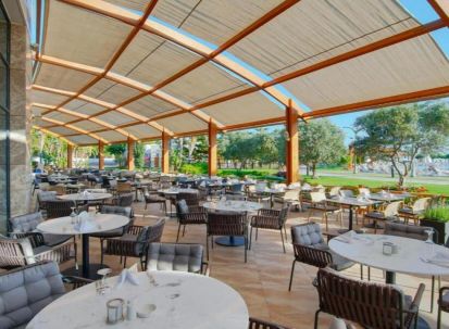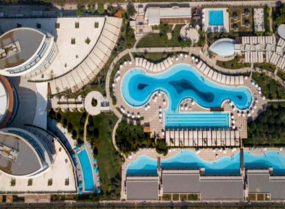 Основен ресторант, 2 а-ла-карт ресторанта (средиземноморски и стейк хаус – срещу допълнително заплащане, с преварителна резервация), 5 бара, сладкарница, 8 открити басейна, аквапарк със 9 водни пързалки, фитнес, СПА център с вътрешен басейн , магазини, 6 конферентни зали, Wi-fi интернет – на цялата територия на хотела.