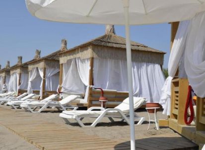 Собствен, пясъчен плаж. Чадъри, шезлонги и матраци на плажа и при басейна – безплатно. Плажни кърпи – безплатно.