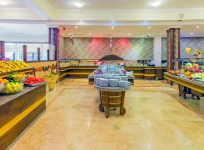 Има основен ресторант (шведска маса), както и допълнителни заведения и барове: снек бар, бар край басейна, бар на плажа, лоби бар.