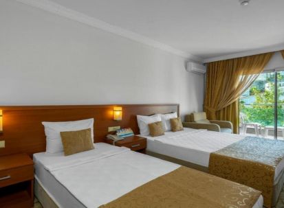 Стандартна стая (28 м²): една спалня, баня с душ, климатик, телевизор, минибар, сейф, телефон, балкон. Подходяща за до 3+1 души.