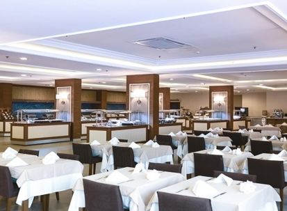 Хотелът има 1 основен ресторант, 1 а-ла-карт ресторант – италиански и турски (международен, по предварителна заявка, 1 посещение на престой – безплатно, деца под 12 г не се допускат в а-ла-карт ресторант) и 3 бара, снек-бар.