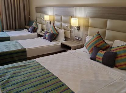 Всички стаи са с балкон, индивидуален климатик, телевизор, баня с душ, сешоар, минибар с безплатно ежедневно презареждан с вода и безалкохолни напитки, сейф (безплатно), балкон, безжичен интернет (срещу заплащане - 1 EUR /ден).