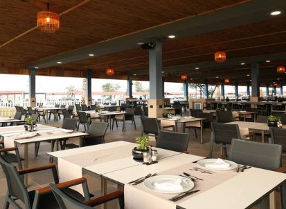 Основен ресторант, 5 a - лa - карт ресторанта ( по едно безплатно посещение по време на престоя ), 7 бара, магазини, Интернет - кафе, безжичен интернет на територията на хотела ( безплатно ), 2 открити басейна, закрит басейн, аква парк, 5 водни пързалки. За децата: мини клуб(4-12г.), 2 детски басейна. Безплатни услуги: турска баня, сауна, парна баня, джакузи, тенис корт, баскетбол, плажен волейбол, фитнес, тенис на маса, водна топка, водна аеробика, дартс, мини голф, кино. Платени услуги: масаж, пилинг, билярд, боулинг, видео игри, джага, осветление на тенис корта, тенис ракети и топки под наем, кану, водно колело, сърф (с лиценз), голф, водни ски, банан, фризьорски салон, СПА-център