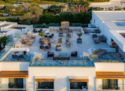 Собствен пясъчен плаж с дължина от 150 м и 150 м платформа - чадъри, шезлонги и кърпи на плажа и при басейна - безплатно.