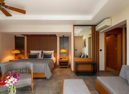 Хотелът се състои от 339 стаи от които: Standard Room Land View (35 m²), Standard Room Sea View (32 m²), Standard Sea View Corner room (35 m²), Deluxe Garden Room (30 m²), Superior Garden Room (35 m²), Junior Suite (45 m²), Senior Suite (55 m²) и стаи за инвалиди. Всички стаи са оборудвани с централен климатик, телевизор, телефон, баня с душ/вана, сешоар, мини бар, сейф, балкон или тераса, Wi-Fi. Почистване на стаите - всеки ден, смяна на спалното бельо - 3 пъти в седмицата.