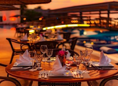 All Inclusive - закуска, обяд, вечеря и междинни хранения на шведска маса; алкохолни и безалкохолни напитки местно производство и някои вносни - без лимит (съгласно концепцията на хотела).