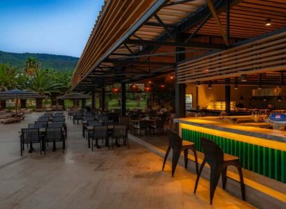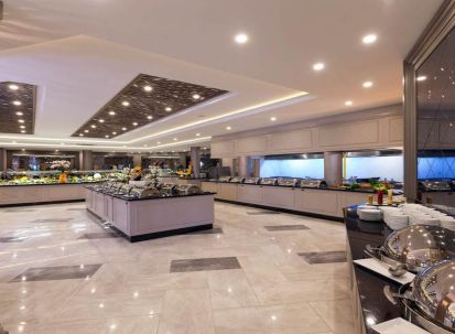 Oсновен ресторант Karya, два а-ла-карт ресторантa (турски Begonvil и рибен Teras Seafood - с предварителна резервация, едно безплатно посещение за престой от минимум три нощувки), 6 бара - Palm Bar, Roof Bar, Pool Bar, Sea Bar, Snack Bar и Olive Bar.