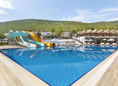 Основен ресторант с външна и вътрешна секция, 2 а-ла-карт ресторанта (турска кухня и морски деликатеси, със задължителна предварителна резервация), бар на басейна, бар на плажа, открит басейн, релакс басейн, детски басейн, водни пързалки, SPA & Welness център, паркинг.