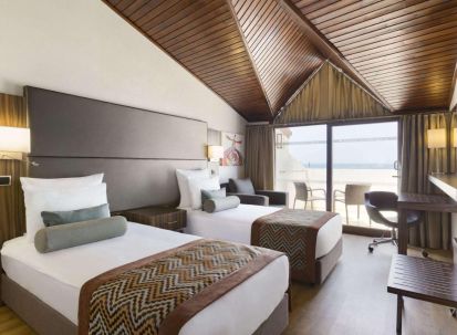 Хотелът разполага с 369 стаи, всички стаи са луксозно обзаведени и оборудвани с климатик, телевизор, телефон, баня с душ /вана, сешоар, минибар, сет за чай /кафе, сейф, балкон. почиставне на стаите - всеки ден, смяна на спалното бельо - 2 пъти в седмицата.