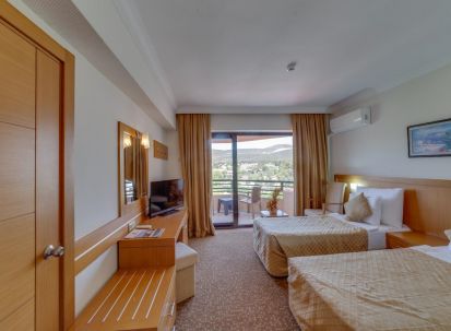 Всички стаи са оборудвани с климатик, телевизор, телефон, баня с душ/вана, сешоар, мини бар (платен), сейф (безплатен), балкон. Почистване на стаите - всеки ден, смяна на спалното бельо и кърпите - 2 пъти в седмицата.