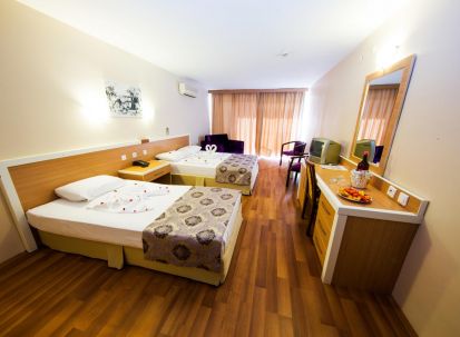 Хотелът разполага общо с 134 стаи. Всички стаи са оборудвани с климатик, телевизор, телефон, баня с душ/вана, сешоар, сейф (платено), балкон. Почистване на стаите- всеки ден.