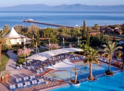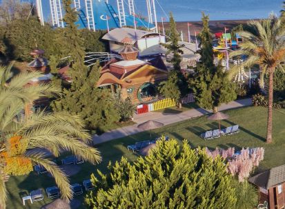 Собствен, пясъчен плаж с дължина 300 м, притежаващ ссертификат "Син флаг" и кей със 150 м дължина. Чадъри, шезлонги, матраци и плажни кърпи на плажа и при басейна - безплатно.