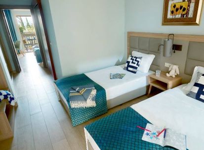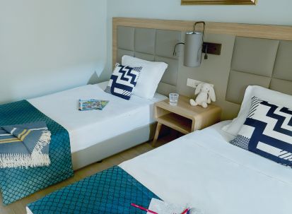 Хотелът разполага с общо 335 стаи, от които 83 Standard Room (25 м²), Family Room (1 спалня - 35 м²), Family Suites (2 спални, 1 баня - 37 м²), Superior Family Suites (3 спални, 2 бани - 55 м²), Villa (2 спални, 2 бани - 90 м²), стаи за хора с увреждания. Всички стаи са оборудвани с климатик, телевизор, телефон, баня с душ, сешоар, сет за чай/кафе, минибар (срещу заплащане), сейф (безплатен). Почистване на стаите и смяна на кърпите – всеки ден, смяна на спалното бельо – 2 пъти в седмицата.