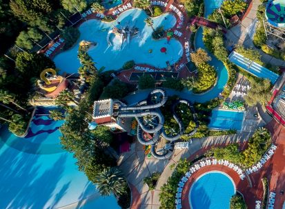 На гостите на хотела е осигурен неограничен безплатен достъп до Аквапарка, който разполага с 31 водни пързалки, от които няколко екстремни (Super combo,Screamer, Crazy Raft, Boomerango, Space Bowl и др.), басейн със 7 вида изкуствени вълни, 400 метра дълга Lazy River, Lily Pad - място за срещи на родители и техните деца, а за по-малките деца са налични: голяма детска зона с Treasure Island; Pirate’s Ship с 6 пързалки и интерактивни играчки, комплекси от пързалки Submarine Octopus, Frogslide и Wreckship.