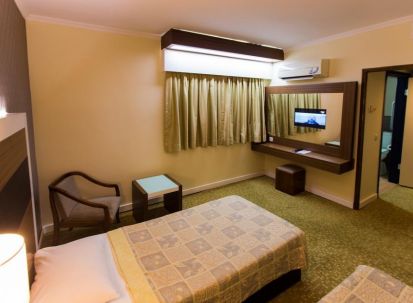 Хотелът разполага с 84 стандартни стаи (26 кв.м), 3 апартамента (52 кв.м). Всички стаи са оборудвани с климатик, телевизор, телефон, баня с душ, минибар, сейф. Почистване на стаите - всeки ден, смяна на спалното бельо и кърпите - 2 пъти в седмицата.