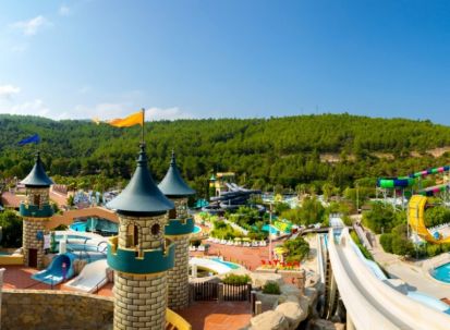 На разположение на гостите на хотела е аквапарк, който разполага с 31 водни пързалки, от които няколко екстремни (Super combo,Screamer, Crazy Raft, Boomerango, Space Bowl и др.), басейн със 7 вида изкуствени вълни, 400 метра дълга Lazy River, Lily Pad - място за срещи на родители и техните деца, а за по-малките деца са налични: голяма детска зона с пиратски кораб с 6 пързалки и интерактивни играчки, комплекс от пързалки „Подводен октопод“, жабешка пързалка и разбития кораб. Основни правила за ползване на Аквапарка: Не се препоръчва за хора с физически увреждания, сърдечни оплаквания и бременни жени. Деца на възраст под 12 години трябва да бъдат придружени от възрастен. Не се допуска използването на някои от пързалките от деца с височина под 120 см. Всички деца под 3-годишна възраст се изискват да носят "swim" памперси. Консумацията на хранa и напитки на теритотията на аквапарка е срещу заплащане.