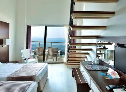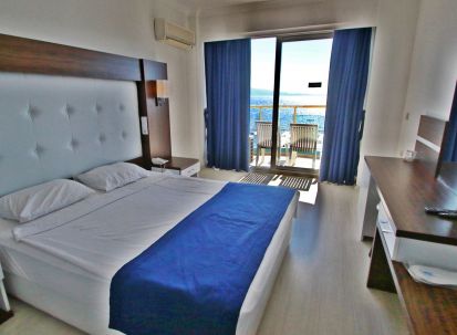 Хотелът разполага 137 стаи, от които 127 стандартни (103 с изглед море и 24 с изглед градина, 20-24 м²), 8 дуплекс фамилни (2 единични легла на долния етаж и спалня на горния етаж, без свързваща врата, 25-26 м²), 1 суит и 1 disabled (пригоденa за хора с ограничена подвижност - 30 м²). Всички стаи са оборудвани с климатик, телевизор, телефон, баня с душ/вана, сешоар, минибар, сейф (безплатен), балкон.