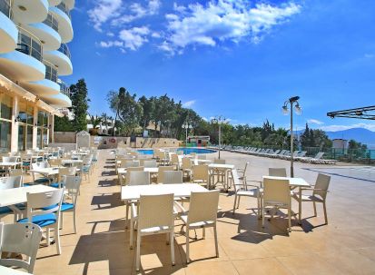 Основен ресторант, 2 бара, 2 открити басейна, закрит неотопляем басейн.