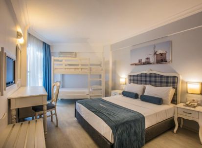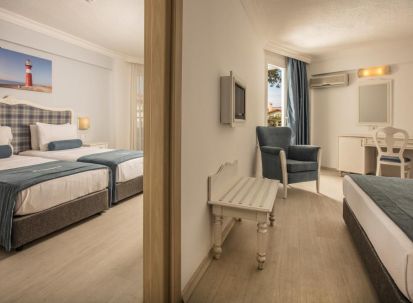 Хотелът разполага с 354 стаи, от които 250 стандартни стаи с изглед градина или с изглед море (20-23 м²), 68 фамилни стаи (две свързани помещения и с две бани, 44-46 м²), 30 стандартни стаи с джуетажни легла (23 м²), 4 апартамента (спалня, всекидневна, баня с джакузи, 44 м²) и 4 стаи за инвалиди. Всички стаи са оборудвани с климатик, телевизор, телефон, баня с душ, сешоар, сет за чай/кафе, минибар (безплатен), сейф (безплатен), балкон или тераса, Wi-Fi интернет.