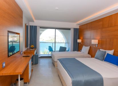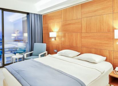 Хотелът разполага с общо 330 стаи, от които Promo Room Garden View (25-30 m²), Standart Room Garden View (25-30 m²), Standart Room Sea View (25-30 m²), Large Garden View Room (1 спалня и единично легло - 35-40 m²), Large Sea View Room (1 спалня и единично легло - 35-40 m²), Family Room (2 спални, 2 бани - 50-60 m²). Всички са оборудвани с климатик, телевизор, телефон, баня с душ, сешоар, сет за кафе/ чай, минибар (безплатен, зареждане всеки ден), сейф (безплатен), Wi-Fi, балкон. Почистване на стаите и смяна на кърпите – всеки ден, смяна на бельото – 2 пъти в седмицата.