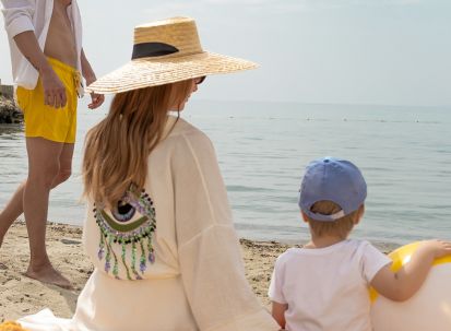 Собствен, пясъчен, притежаващ сертификат "Син флаг" (дължина 200 м), на 50 м от хотела (преминаване през подлез на хотела).Чадъри, шезлонги, матраци и плажни кърпи на плажа и при басейна – безплатно. Бар на плажа от 09:00 до 17:30 часа (безплатни топли и студени напитки, бира).