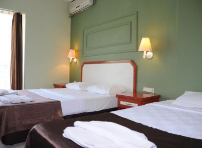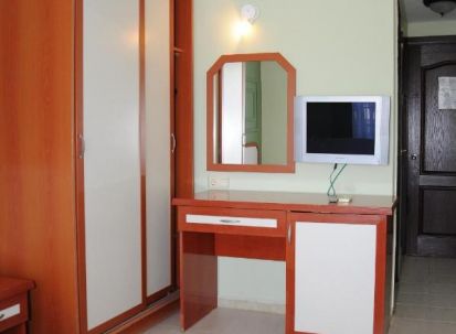 Хотелът разполага с общо 129 стандартни (18 кв.м.) и фамилни стаи (34 кв.м.), всички оборудвани с климатик, телевизор, телефон, баня с душ, сешоар, минибар (платен), сейф, балкон. Почистване на стаите – всеки ден, смяна на бельото и кърпите – 2 пъти в седмицата.