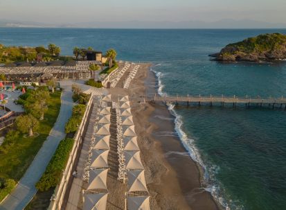 Собствен, пясъчно-чакълест, притежаващ сертификат "Син флаг" и платформа. Чадъри, матраци, шезлонги и плажни кърпи при басейна и на плажа – безплатно.
