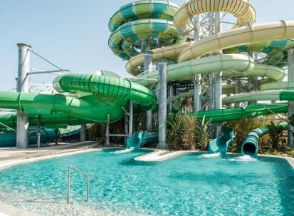 На разположение на любителите на екстремни водни спортове са пързалките - тематичната „King Kobra” (наградена като „Най-добрата водна пързалка в Европа“, благодарение на уникалния си дизайн, ярките цветове и изключителното трасе. Извисява се на височина от 5 етажа, вдъхновена от най-дългата змия в света (изчезналата титанобоа е била дълга около 13 метра). Индексът на адреналин е 5 от 5. „Blackhole & Flying Boats“ – затворена пързалка, която предлага уникално преживяване със специалния си дизайн и вълнуващо трасе - омагьосващи светлинни ефекти, изненадващи завои и вълнуващи моменти. “Kamikaze” - aдреналин, вълнение, скорост и тръпка в едно. “Looping Rocket” - водна пързалка с форма на ракета. “Body Slide” – закрита дълга водна пързалка. “Aquatube” - къса, но бърза пързалка, с визуални и звукови ефекти в един кратък, но вълнуващ вихър от емоции.