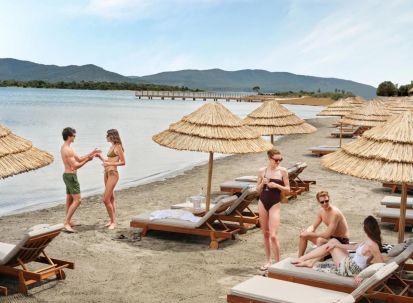 Собствен, пясъчен и платформа. Чадъри, шезлонги и матраци на плажа и при басейна - безплатно. Плажни кърпи - безплатно.