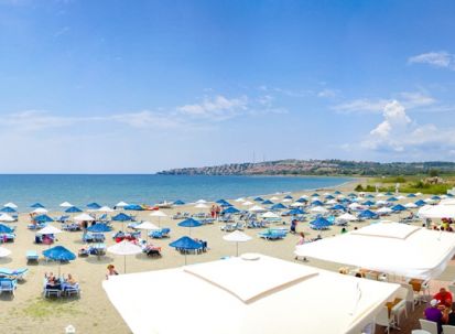 Плаж: собствен, пясъчно-чакълест със сертификат „Син флаг“. Чадъри и шезлонги при басейна и на плажа - безплатно.