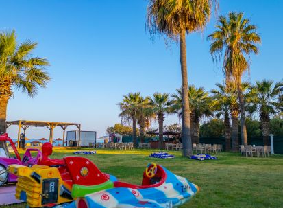 Собствен, пясъчен,със сертификат "Син флаг". Чадъри, шезлонги и матраци на плажа и при басейна – безплатно.