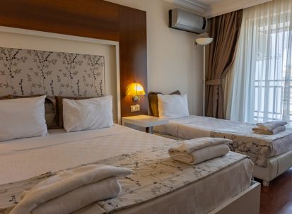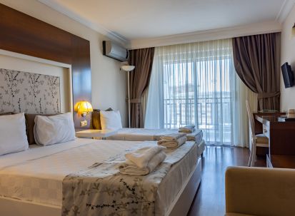 Хотелът разполага с общо 102 стаи, от които: 85 DLX Rooms (26-29 кв.м), 6 Bunk Bed Rooms (28 кв.м), 3 Family Rooms (44 кв.м, две отделни спални - едната с двойно легло, а другата с единично и двуетажно легло), 7 Honeymoon Rooms, 1 Handicapped room (пригодена за хора с ограничена подвижност . Всички стаи са с изглед градина и са оборудвани с климатик, телевизор, телефон, баня с душ, сешоар, сет за чай/кафе, минибар (срещу заплащане), сейф (платен), балкон. Почистване на стаите - всеки ден, смяна на спалното бельо - 2 пъти в седмицата.