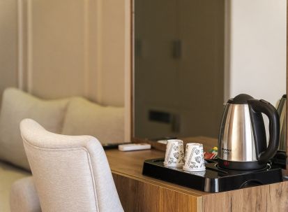 Всички стаи са оборудвани с климатик, телевизор, телефон, баня с душ, сешоар, мини бар (зарежда се еднократно с безалкохолни напитки и вода в деня на настаняване), сет за кафе/чай, сейф (безплатно), Wi-Fi, балкон.