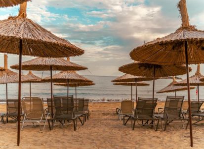 Собствен, пясъчен. Чадъри и шезлонги на плажа и при басейна – безплатно. Плажни кърпи - безплатно.