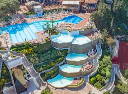 3 основни ресторанта, 5 а-ла-карт ресторанта (с предварителна резервация, срещу заплащане), 10 бара, 11 открити басейна (2 от тях отопляеми), 2 закрити басейна, аквапарк с 18 водни (разположен на площ от 22.000 м²). За децата: Baby Club ( 6м-3г), Snoopy Club(3-5г), Jokers Club (6-8г), Kid’s Club( 9-12г),Teens Club (13-17г) мини голф, професионална детска анимация, спортни кръжоци за деца (джудо, водни спортове, тенис, мрежа за катерене и пр.), "Детски рай" - детски комплекс с водни пързалки и с 8 детски басейна (1 от които отопляем), детски плаж, детски площадки, загадъчни пещери, съкровищни острови, детски амфитеатър.