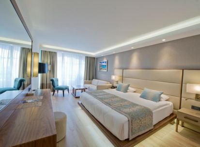 3 основни ресторанта, 5 а-ла-карт ресторанта (с предварителна резервация, срещу заплащане), 10 бара, 11 открити басейна (2 от тях отопляеми), 2 закрити басейна, аквапарк с 18 водни пързалки от различен вид - 22.000 м². Безплатни услуги: Сауна, турска баня, тенис на маса, дартс, стрелба с лък, тенис на корт (19 тенис корта със синтетично и кварцово покритие (през деня)), фитнес, аеробика (занимания по йога, пилатес, стречинг, степ аеробика, X-Co, кардио Body Work Out), водни занимания (водна гимнастика, игри в басейна, aqua zumba, water polo),кану, хайкинг, плажен волейбол, баскетбол, мини-футбол, анимация, жива музика, пералня на самообслужване (безплатно), Wi-Fi интернет (на цялата територия на хотела), паркинг. Платени услуги: Масаж, пилинг, фризьорски и козметичен салон, СПА център, джакузи, солариум, лекар, детегледачка, оборудване за тенис корт, билярд, боулинг (3 писти), видеоигри, интернет кафе, уроци по уиндсърфинг и тенис, водни спортове (Fly Board, Jet Ski, James Bond Safari, Rhino Boat Safari, Power Boat), конна езда, гмуркане, мини-голф.