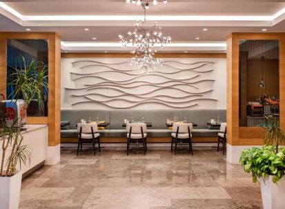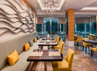 Основен ресторант, 1 италиански а-ла-карт ресторант (срещу заплащане), 3 бара, открит басейн, СПА център, конферентна зала. Безплатни услуги: Сауна, турска баня, парна баня , фитнес, тенис на маса, билярд, WI-FI интернет. Платени услуги: Масаж, фризьор, пералня, химическо чистене. Плаж: Собствен, 40 м. от хотела – чадъри, шезлонги и плажни кърпи на плажа и при басейна – безплатно.