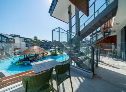 Хотелът разполага с общо 535 стаи, разпределени в 8 триетажни сгради: Standard room land view (30m ²) , Standard room sea view (30m ²), Standard room pool access via stairs (34m ²), Standard direct pool access (34m ²), Large room pool access via stairs (35m ²), Large room direct pool access (35m ²), Family room land view (43m ²), Family room sea view (43m ²), Family room pool access via stairs (43m ²), Family room direct pool access (43m ²), Swim up villa (154m ²).