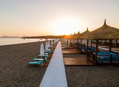 Собствен пясъчен плаж. Чадъри, шезлонги и хавлии - безплатно на плажа и при басейните.