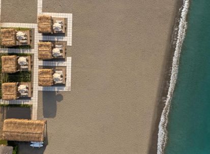Собствен, пясъчен. Чадъри и шезлонги на плажа и при басейна - безплатно. Плажни кърпи - безплатно.