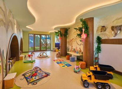 За деца на възраст 4–12 години: Отделни стаи за игра, предназначени за различни възрастови групи, Интерактивни дейности, Забавни спортни дейности за деца, Настолни игри и детски представления, Лего игри, Екипни дейности в стил „Оцеляване“, Рожден ден със специална концепция (платено), Анимационни канали в стаите, Детски бюфет (основен ресторант), Работилници (рисуване, танци, готвене), Детско меню, предлагано във всички ресторанти (с изключение на ресторант Petra +16 Adults Only), Зона за дейности на открито (при подходящо време), Детска площадка, Плувен басейн