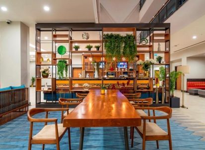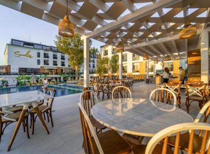 Основен ресторант с капацитет 300 души, а-ла-карт ресторант, лоби бар, пул бар, снек бар, бар ресторант Vertex, градина, тераса, сезонен открит плувен басейн на 3 нива, денонощна рецепция. Безплатно: сауна, турска баня, фитнес, гимнастика, детска площадка, детски клуб, тенис на маса, шах. Срещу заплащане: масаж, рум сървиз, пране, гладене, химическо чистене; рент-а-кар.